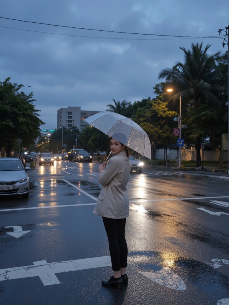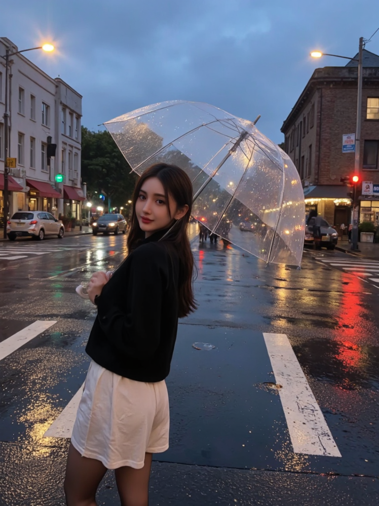 一个女孩在小吃摊,抱着一个巨大夸张的冰淇淋在吃